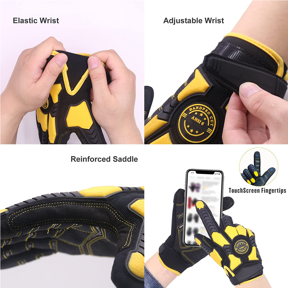 • Anti-skid PVC dots on palm protection operation oilfield mechanic gloves