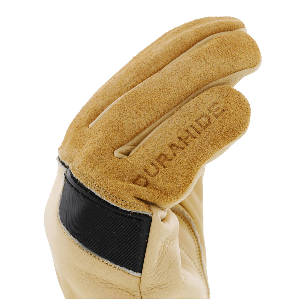 Safety work gloves include reinforced stitching on palm and thumb for extended wear and durability