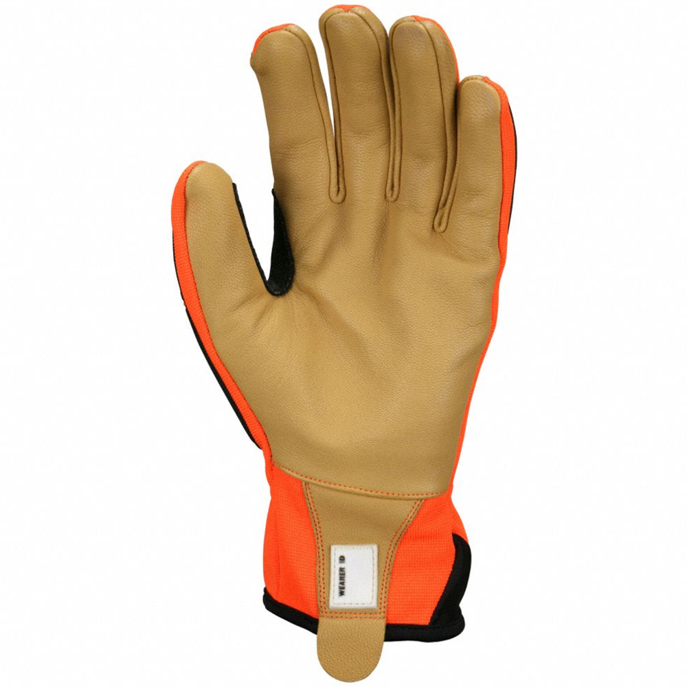 Safety work gloves include reinforced stitching on palm and thumb for extended wear and durability